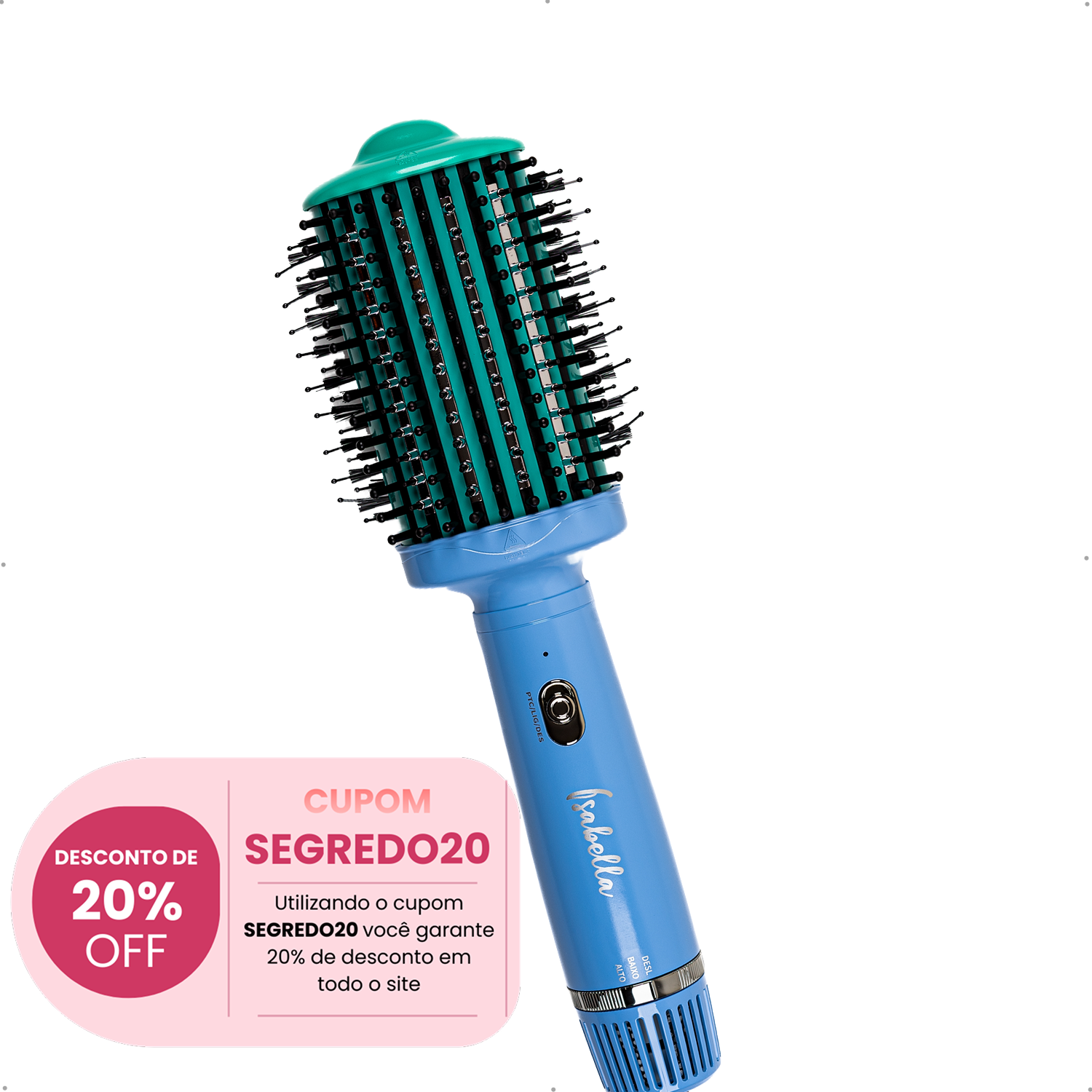 A Escova Secadora + Pente Alisador Isabella chegou para realizar o desejo de mulheres que buscam praticidade, performance e beleza em um único produto. Uma verdadeira revolução no mercado de escovas secadoras!